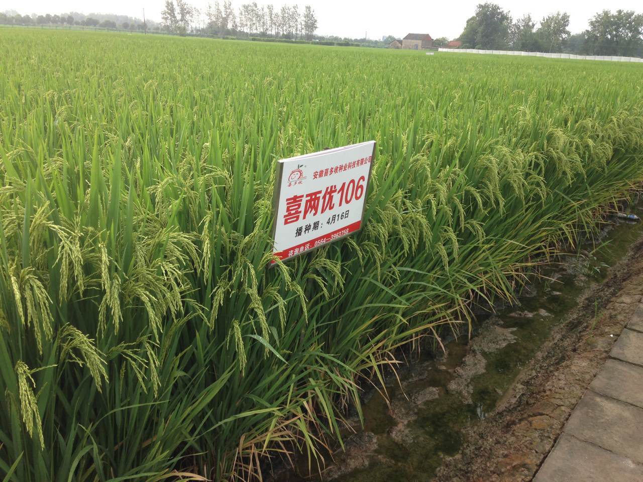 喜兩優(yōu)106:在安徽作中稻種植生育期135天左右,耐高溫能力強(qiáng),中抗稻瘟病,高肥水栽培產(chǎn)量更高,千粒重28.2克,品質(zhì)達(dá)到優(yōu)二標(biāo)準(zhǔn),米飯適口性好,再生能力強(qiáng)可做再生稻種植。